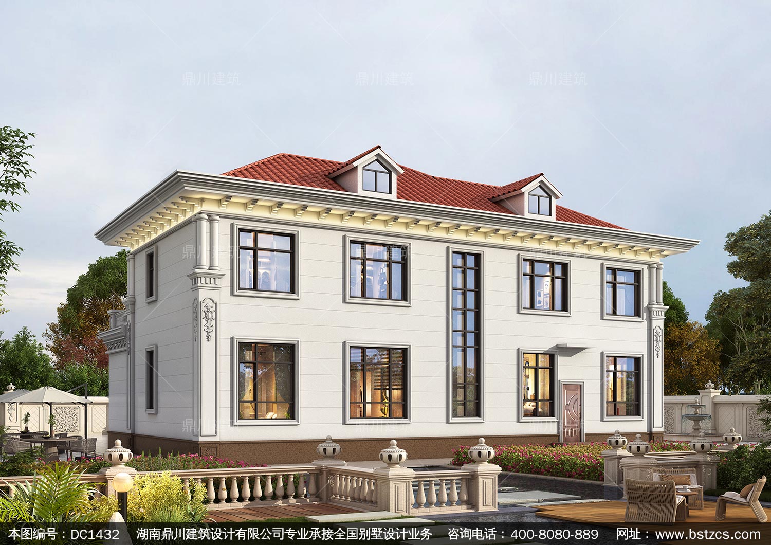 大氣歐式二層別墅設計圖紙及效果圖_農村自建房設計,鼎川建筑