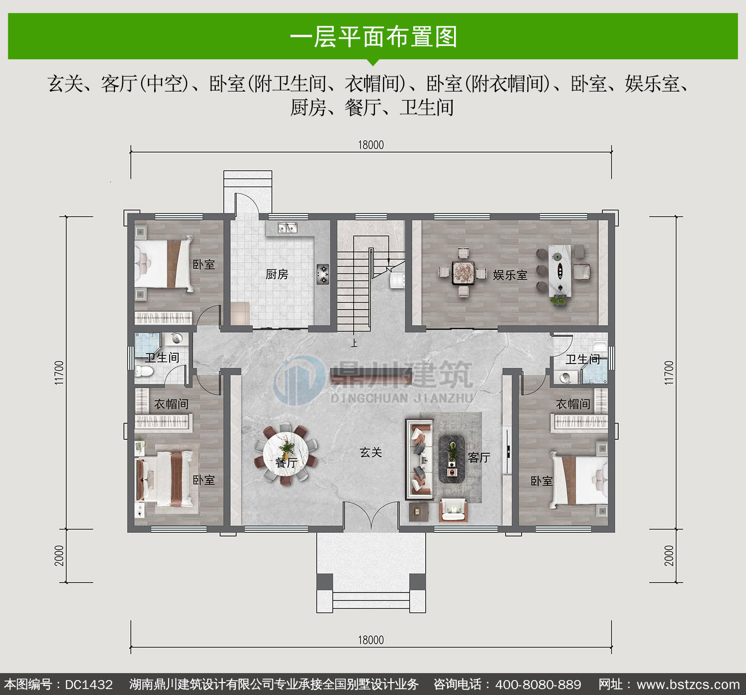 | 一 層: | 玄關、客廳(中空)、臥室(附衛生間、衣帽間)、臥室(附衣帽間)、臥室、娛樂室、廚房、餐廳、衛生間 | |||