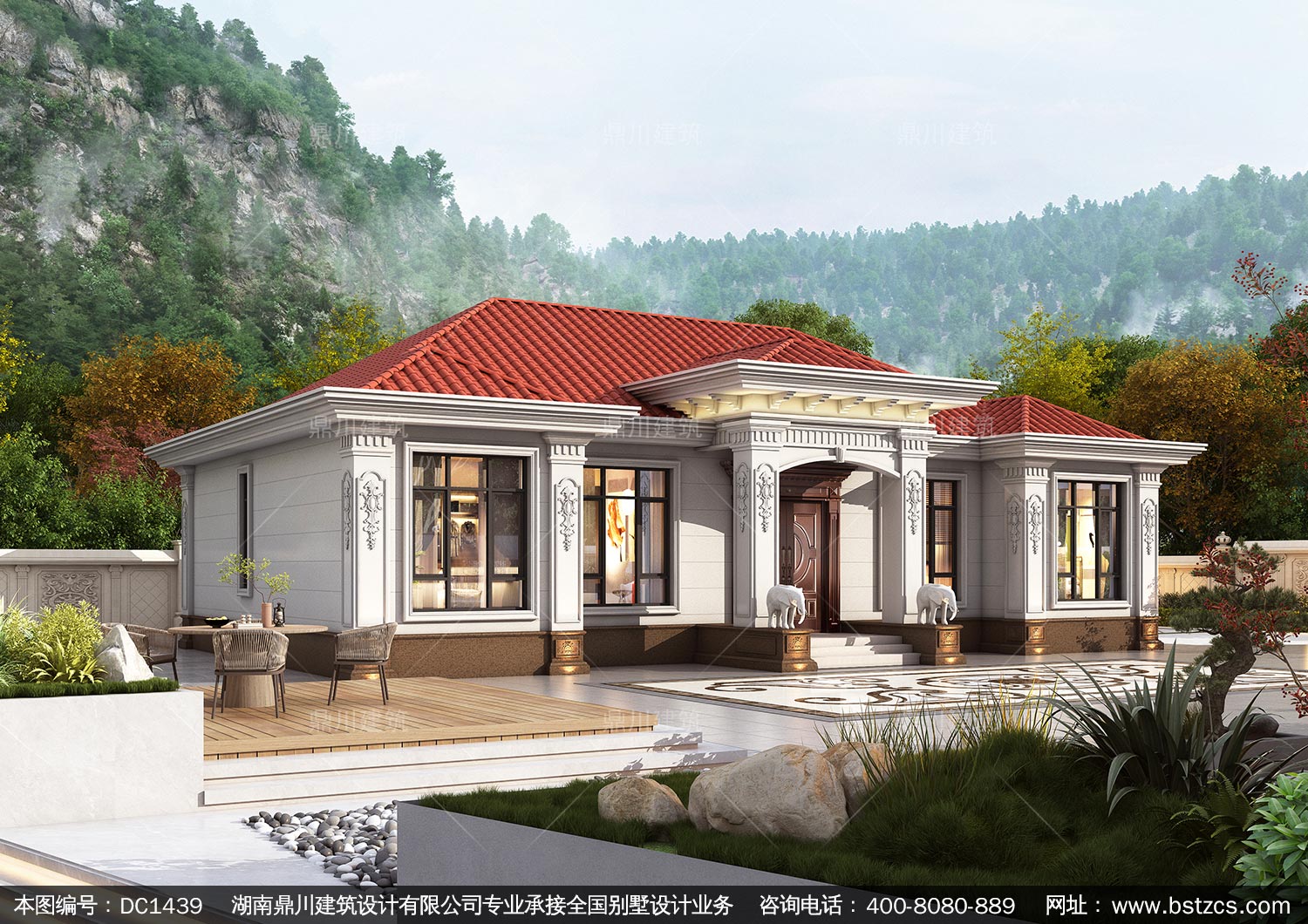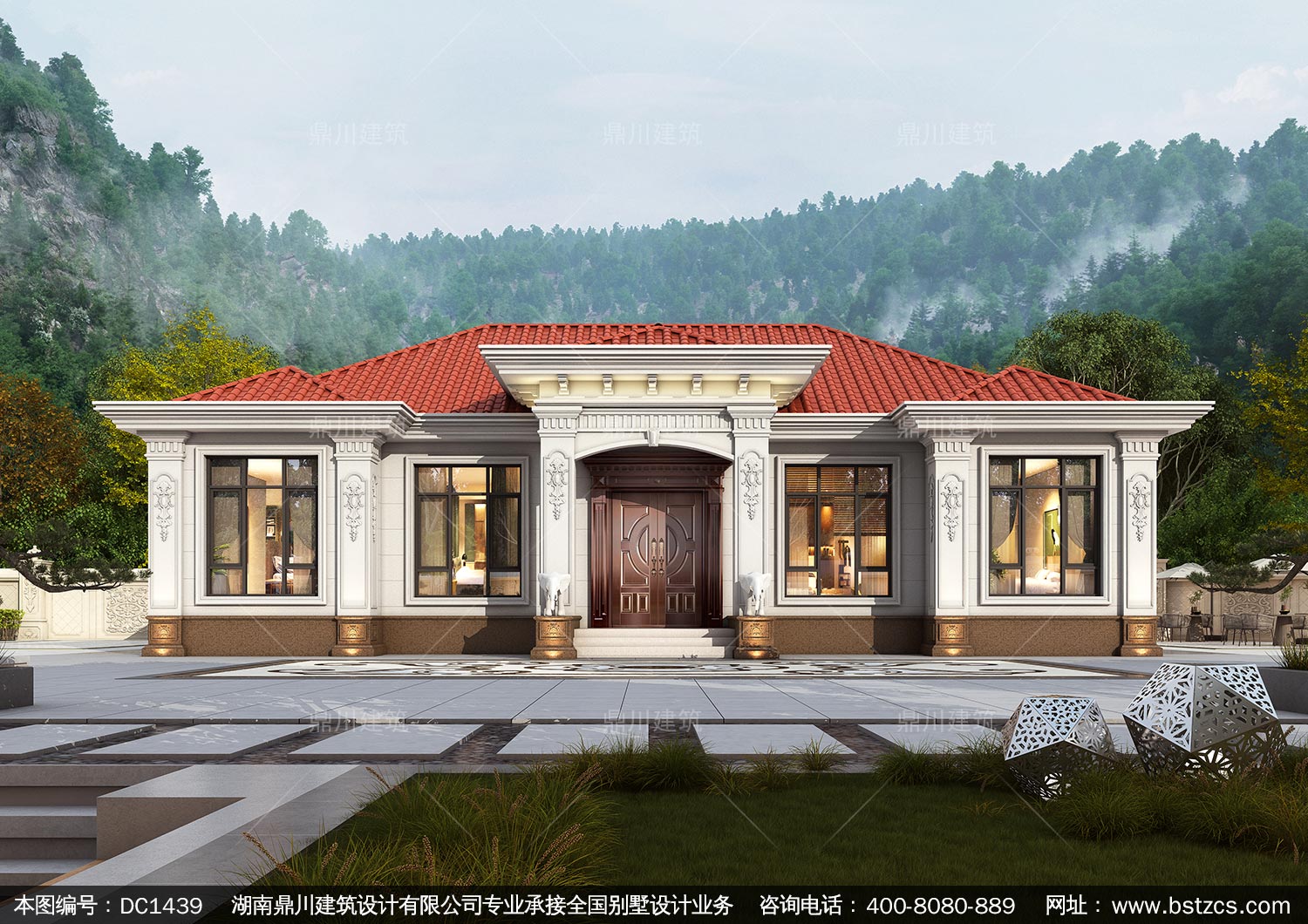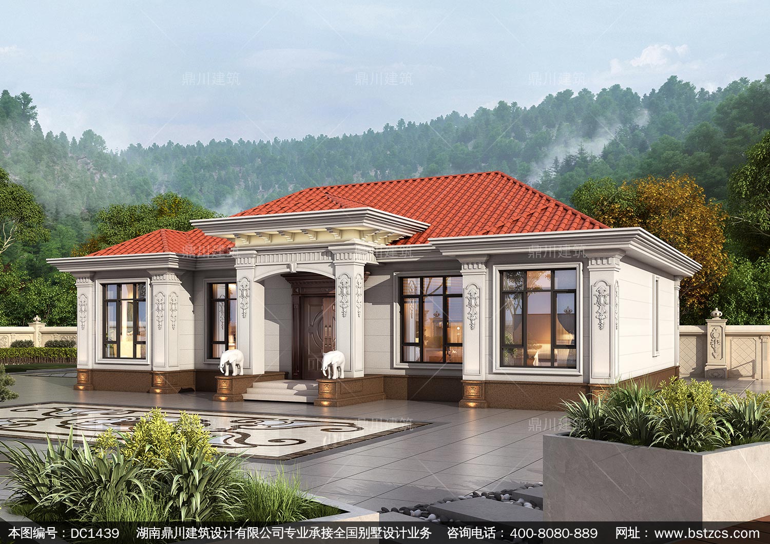 大氣歐式一層別墅設計圖紙及效果圖_農村自建房設計,鼎川建筑