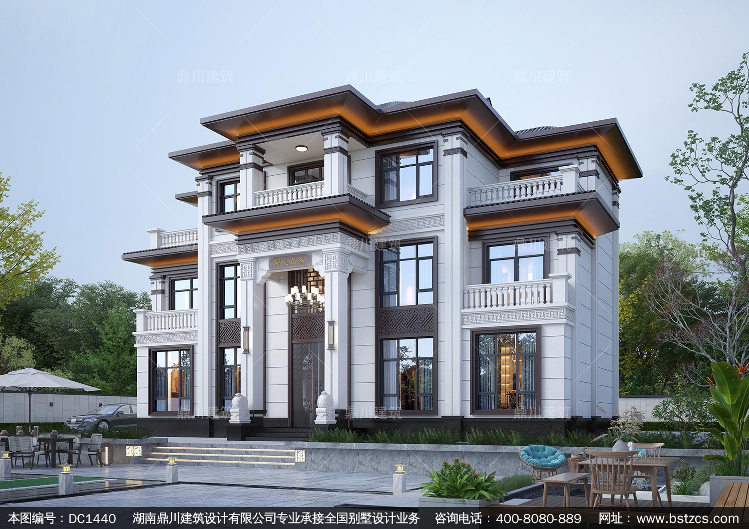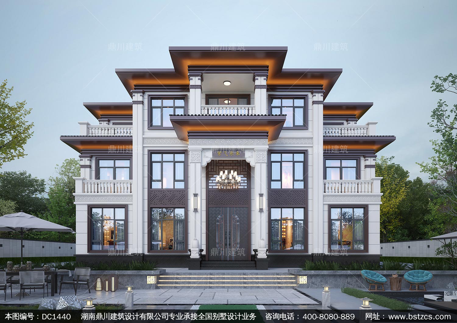 大氣新中式三層別墅設計圖紙及效果圖_農村自建房設計,鼎川建筑