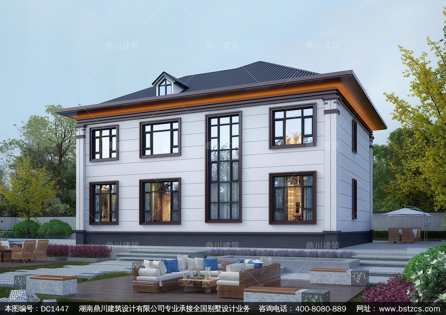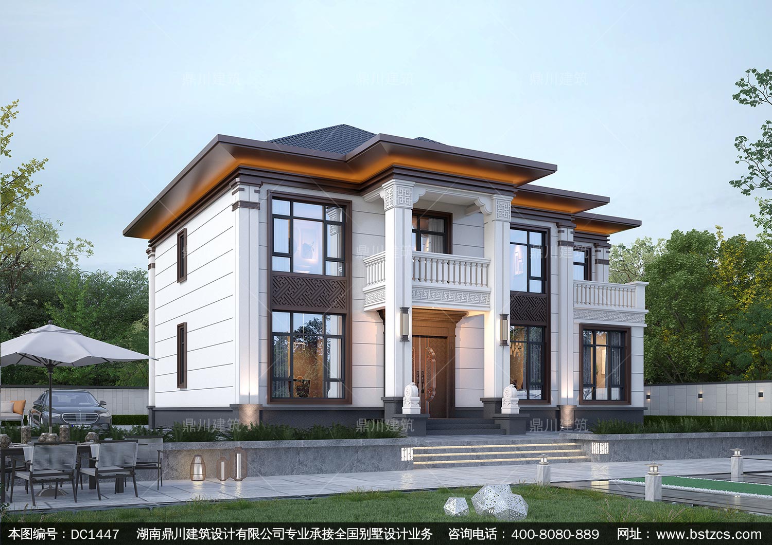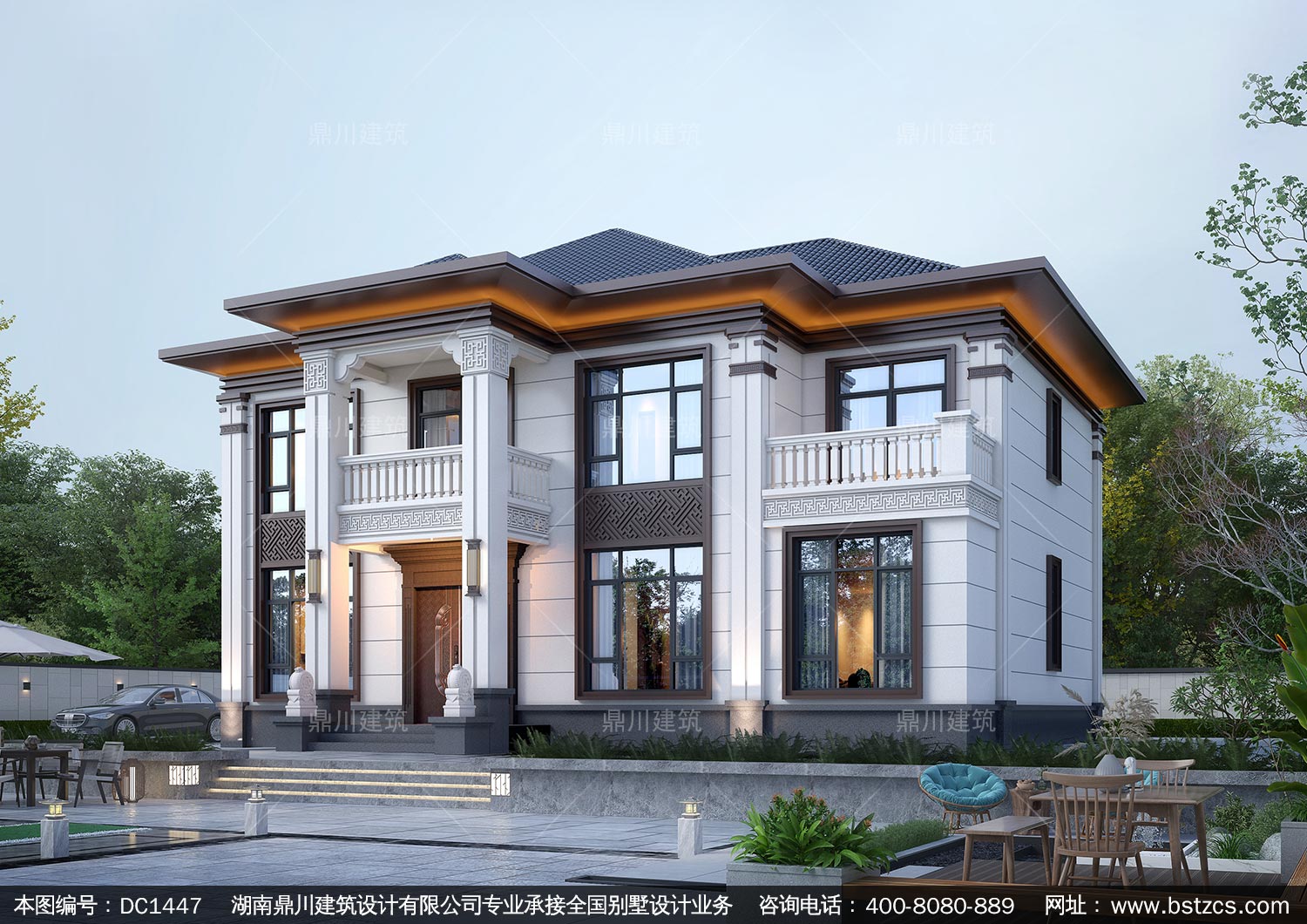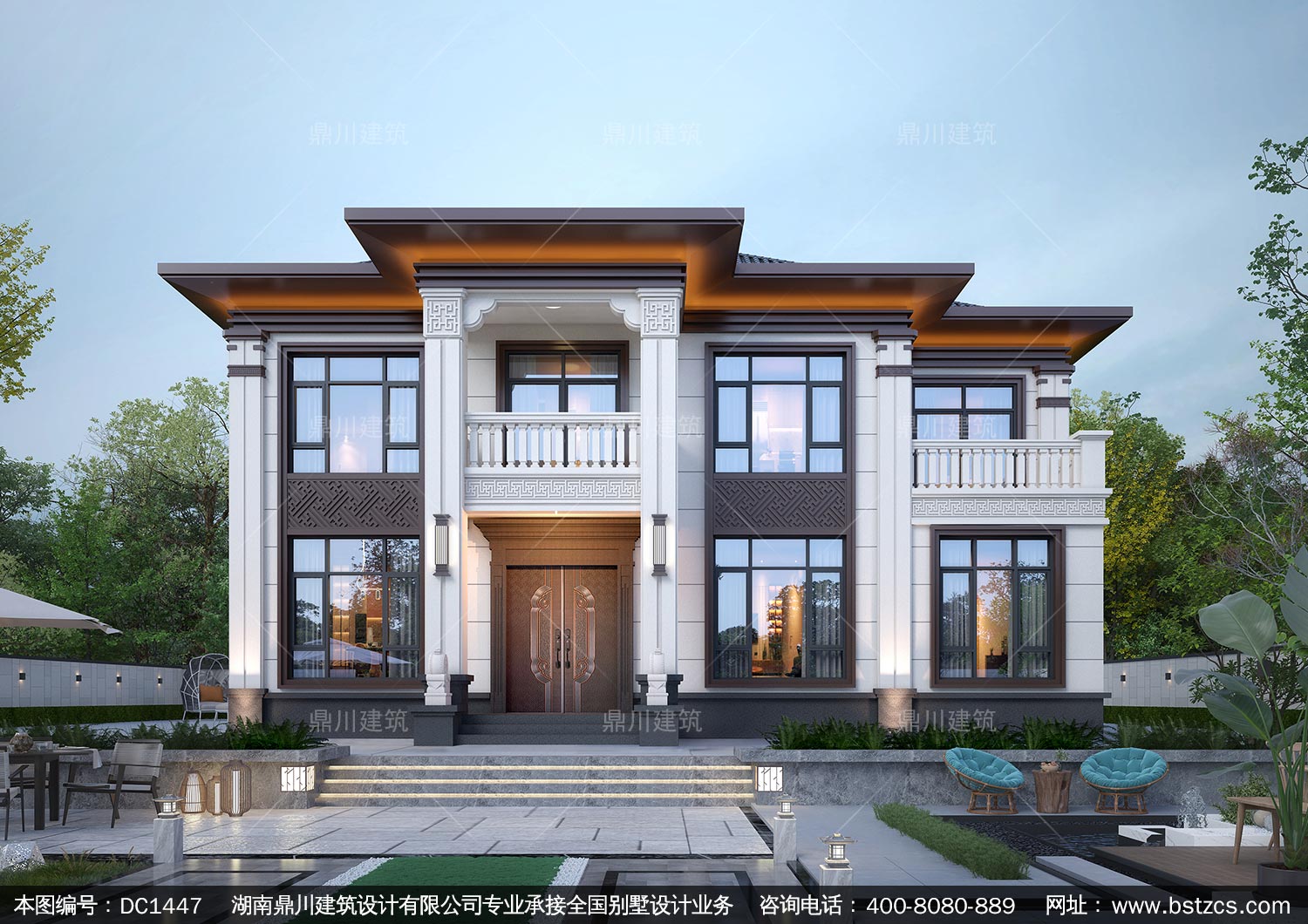 大氣新中式二層別墅設(shè)計圖紙及效果圖_農(nóng)村自建房設(shè)計,鼎川建筑
