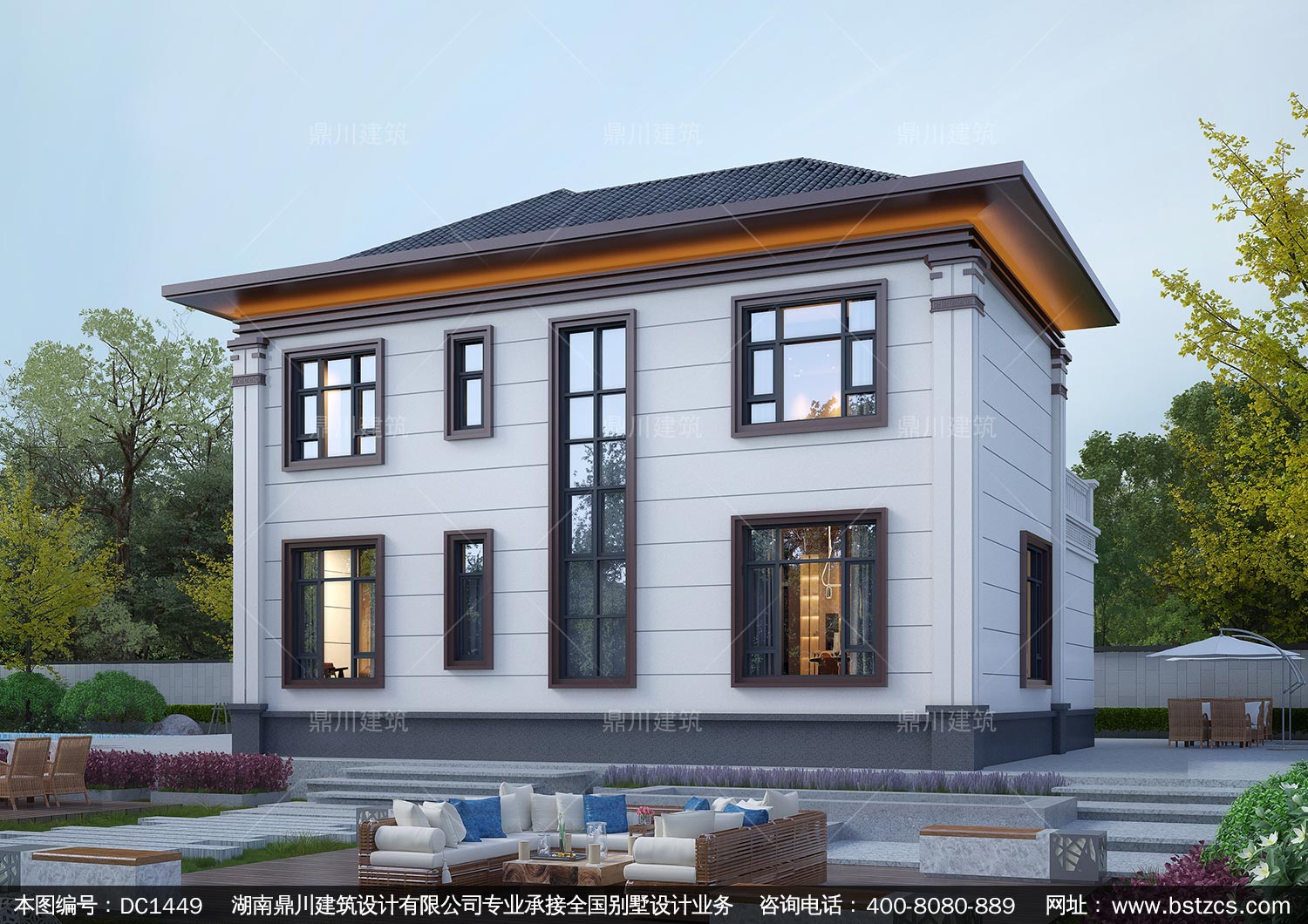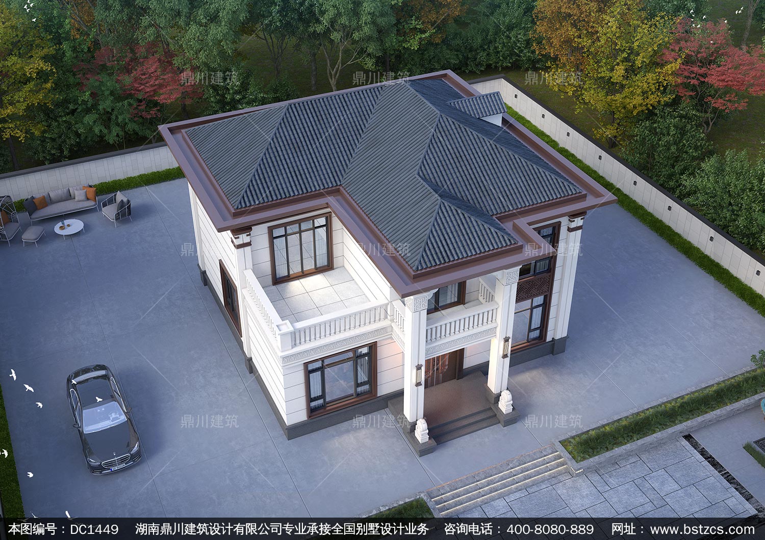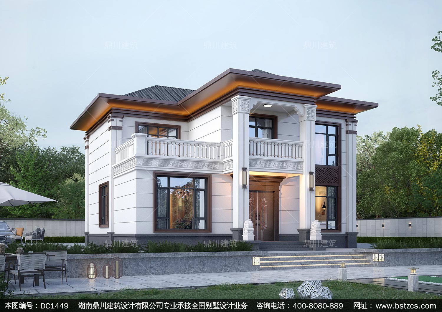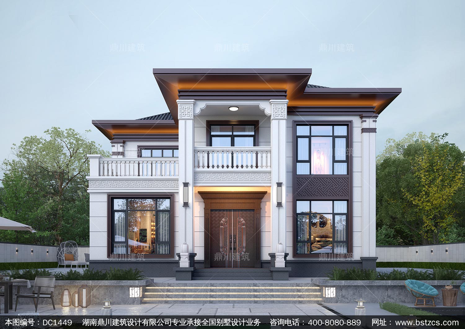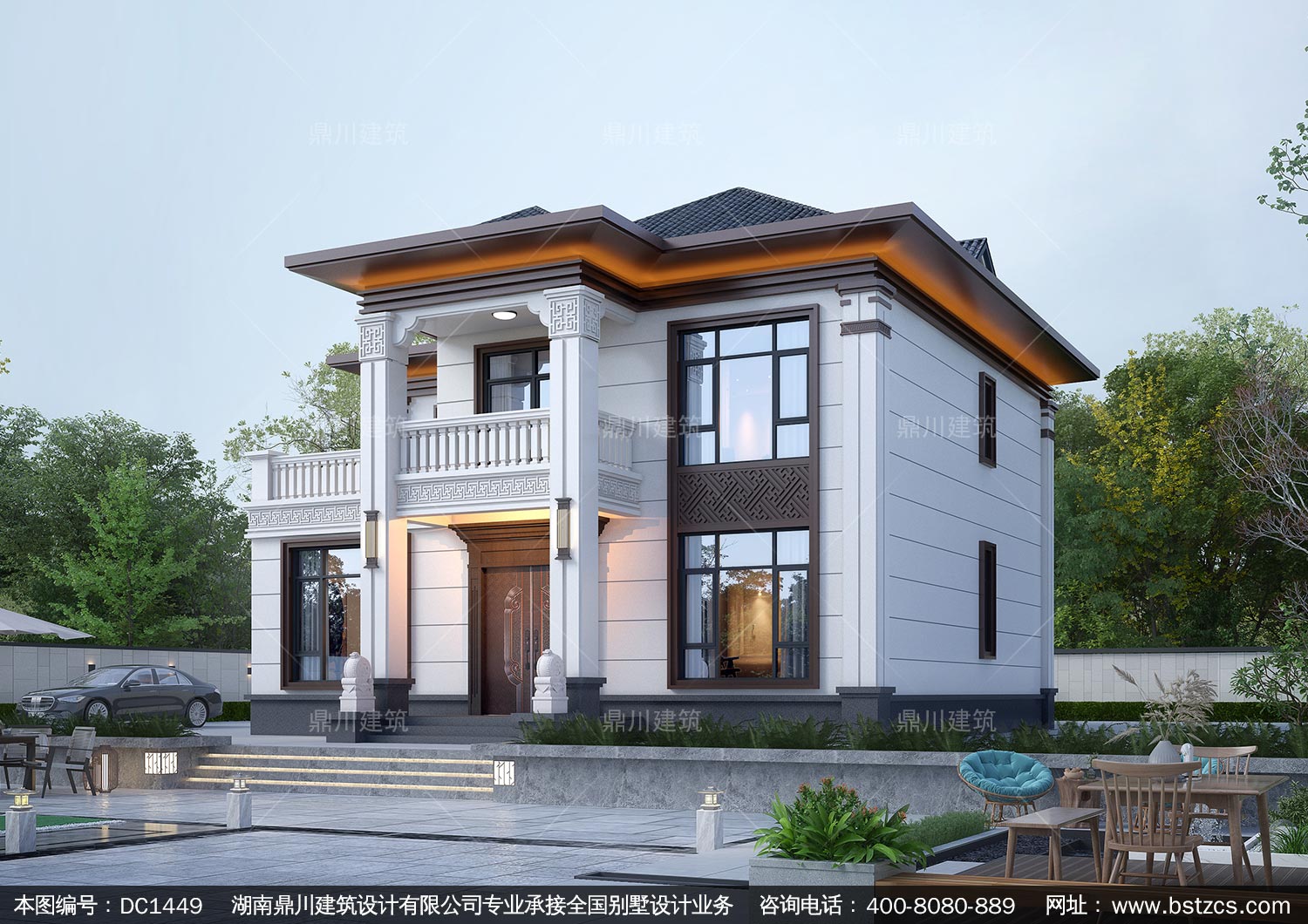 大氣新中式二層別墅設計圖紙及效果圖_農村自建房設計,鼎川建筑