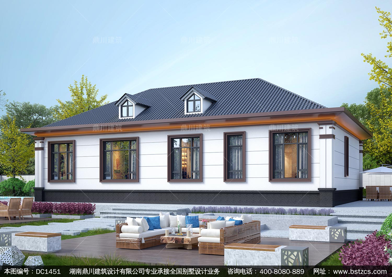 大氣新中式一層別墅設計圖紙及效果圖_農村自建房設計,鼎川建筑