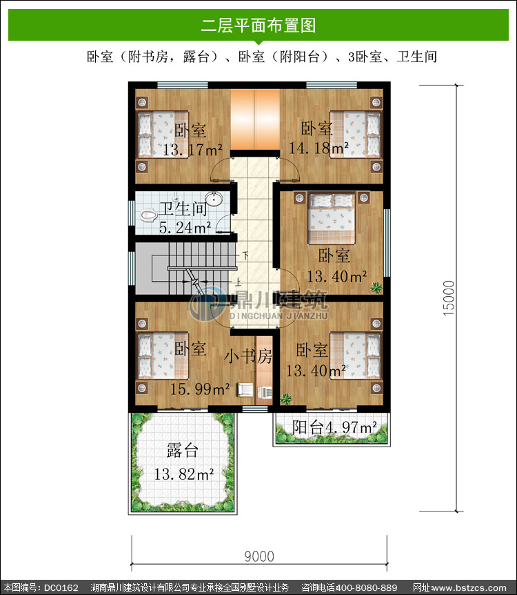 | 二 層: | 臥室(附書房,露臺)、臥室(附陽臺)、3臥室、衛生間 | |||