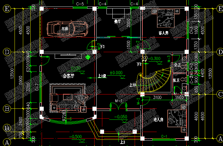 帶車庫及露臺錯層別墅設計全套圖紙及效果圖_別墅設計圖紙,農(nóng)村