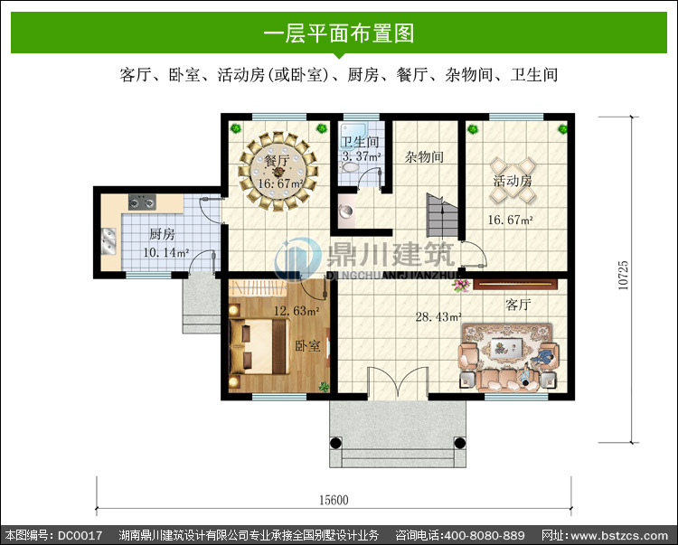 | 一 層: | 客廳、臥室、活動房(或臥室)、廚房、餐廳、雜物間、衛(wèi)生間 | |||