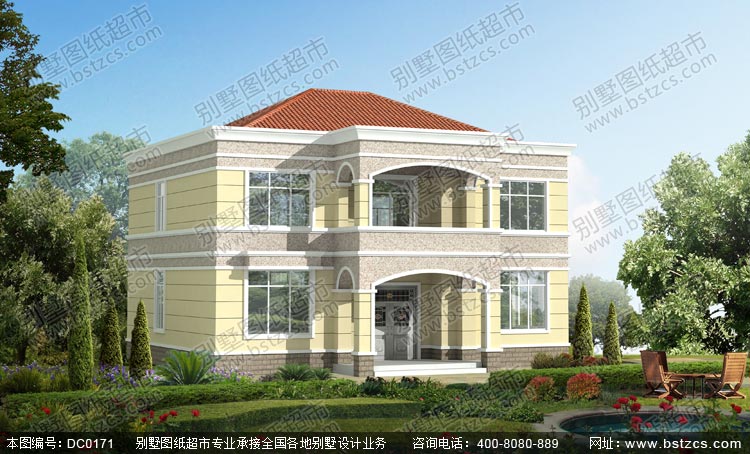| 編號: DC0171 | 層數: 二層帶閣樓 | 結構形式: 框架結構 | 主體造價: 22-26萬 |