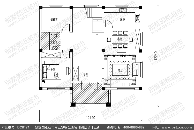 | 開間: 12.44米 | 進深: 12.24米 | 占地面積: 124.54平方米 | 建筑面積: 255.36平方米 |