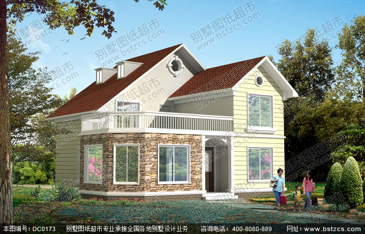 | 編號: DC0173 | 層數: 二層帶閣樓 | 結構形式: 磚混結構 | 主體造價: 16-22萬 |