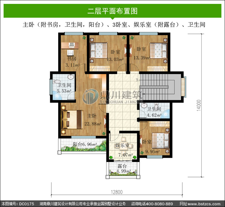 | 二 層: | 主臥(附書房,衛生間,陽臺)、3臥室、娛樂室(附露臺)、衛生間 | |||