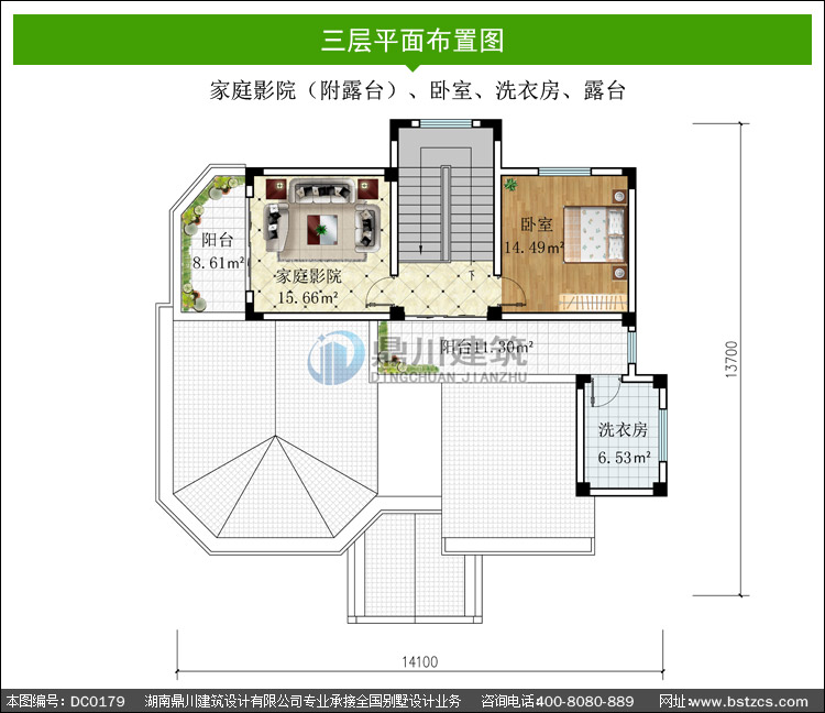 | 三 層: | 家庭影院(附露臺)、臥室、洗衣房、露臺 | |||