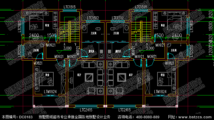 三層平屋頂雙拼別墅效果圖與施工圖_別墅設計圖紙,新農村別墅,