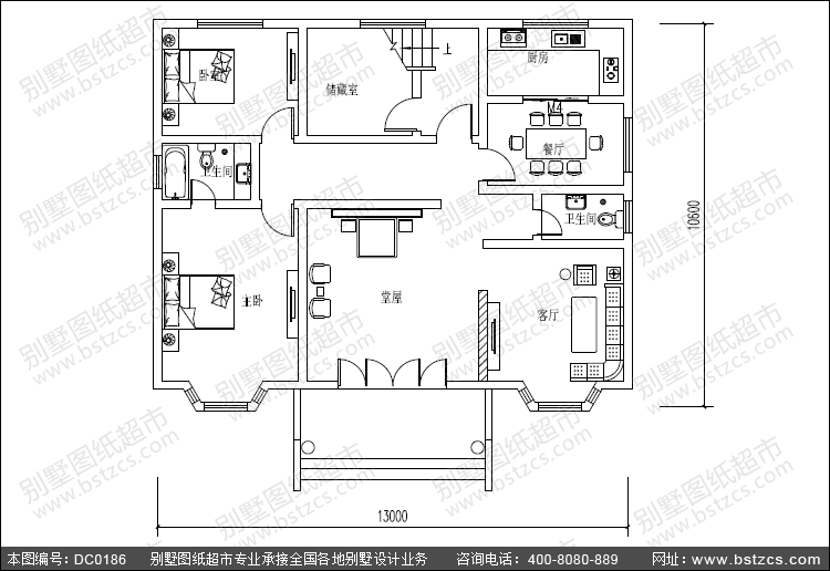 | 一 層: | 堂屋、客廳、主臥(附衛生間)、臥室、廚房、餐廳、儲藏室、衛生間 | |||