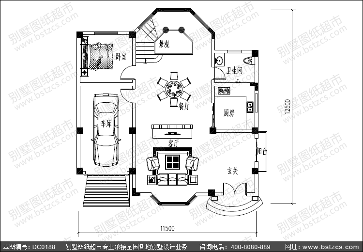 | 開間: 11.5米 | 進(jìn)深: 12.5米 | 占地面積: 122.7平方米 | 建筑面積: 317.1平方米 |