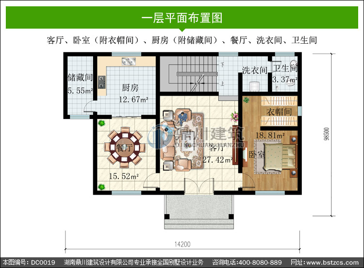| 一 層: | 客廳、臥室(附衣帽間)、廚房(附儲藏間)、餐廳、洗衣間、衛生間; | |||