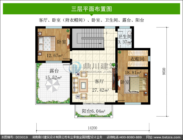 | 三 層: | 客廳、臥室(附衣帽間)、臥室、衛生間、露臺、陽臺 | |||
