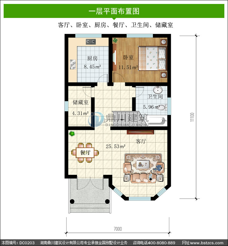 | 一 層: | 客廳、臥室、廚房、餐廳、衛生間、儲藏室 | |||
