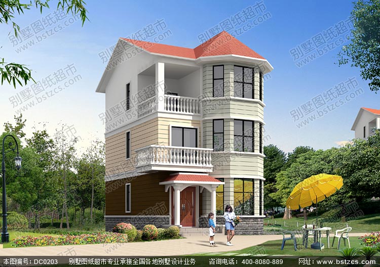 | 編號: DC0203 | 層數: 三層 | 結構形式: 磚混結構 | 主體造價: 20-25萬 |
