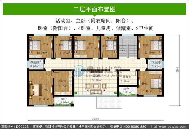 | 二 層: | 活動室、主臥(附衣帽間,陽臺)、臥室(附陽臺)、4臥室、兒童房、儲藏室、2衛生間 | |||