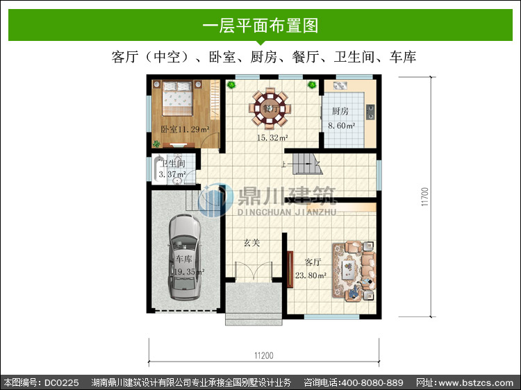| 一 層: | 客廳(中空)、臥室、廚房、餐廳、衛(wèi)生間、車庫 | |||