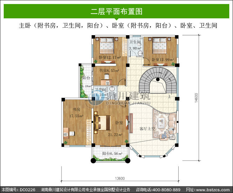 | 二 層: | 主臥(附書房,衛生間,陽臺)、臥室(附書房,陽臺)、臥室、衛生間 | |||
