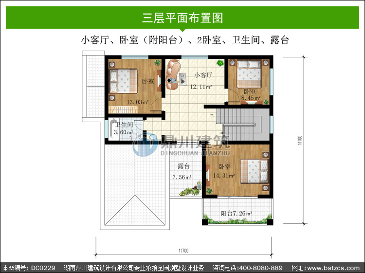 | 三 層: | 小客廳、臥室(附陽臺)、2臥室、衛(wèi)生間、露臺 | |||