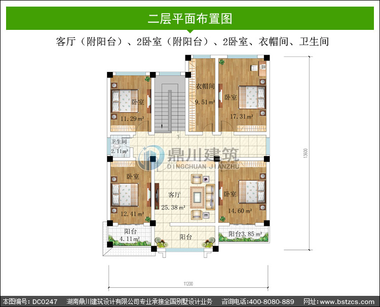 | 二 層: | 客廳(附陽臺)、2臥室(附陽臺)、2臥室、衣帽間、衛生間 | |||
