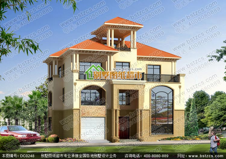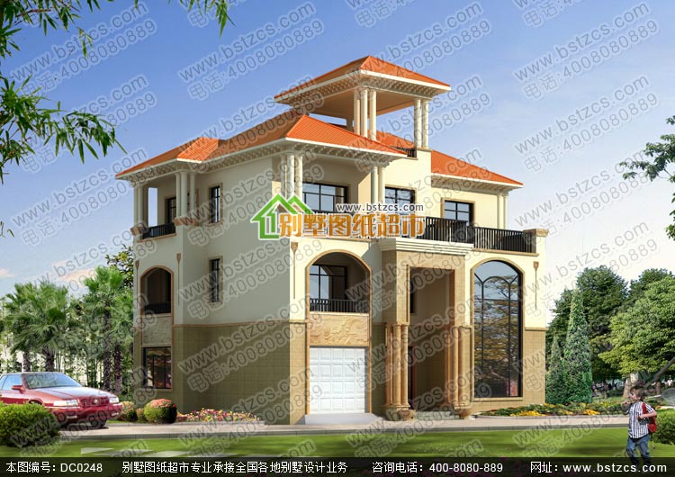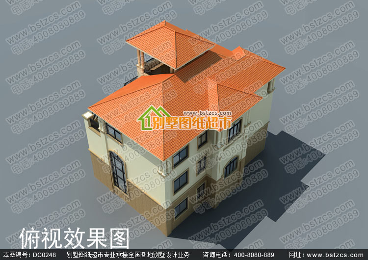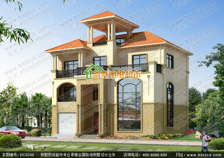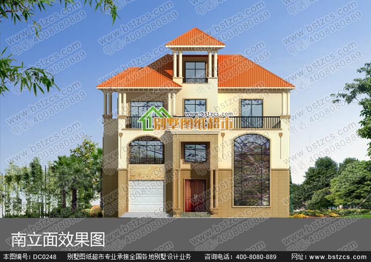 漂亮的三層復式帶車庫歐式別墅施工圖及效果圖_別墅圖紙超市,三層歐式別墅設計圖紙