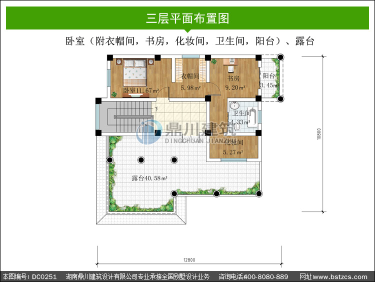 | 三 層: | 臥室(附衣帽間,書(shū)房,化妝間,衛(wèi)生間,陽(yáng)臺(tái))、露臺(tái) | |||
