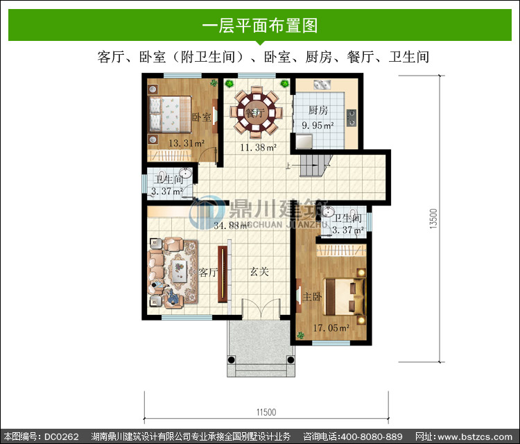 | 開間: 11.5米 | 進深: 13.5米 | 占地面積: 131.72平方米 | 建筑面積: 357.31平方米 |