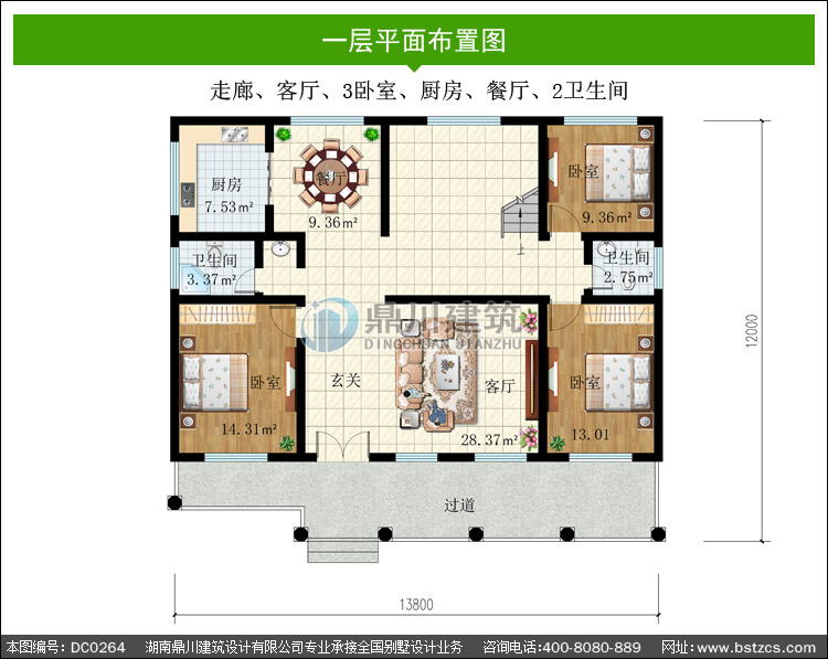 | 編號: DC0264 | 層數: 一層帶閣樓 | 結構形式: 磚混結構 | 主體造價: 18-25萬 |