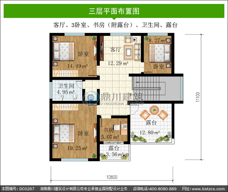 | 三 層: | 客廳、3臥室、書(shū)房(附露臺(tái))、衛(wèi)生間、露臺(tái) | |||