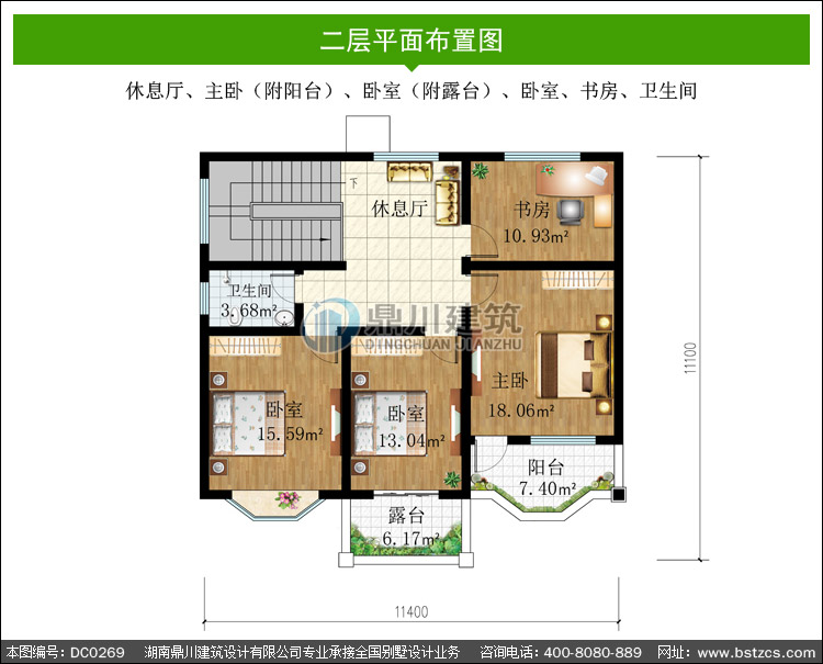 | 二 層: | 休息廳、主臥(附陽臺)、臥室(附露臺)、臥室、書房、衛生間 | |||