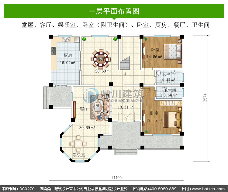 | 一 層: | 堂屋、客廳、娛樂室、臥室(附衛生間)、臥室、廚房、餐廳、衛生間 | |||