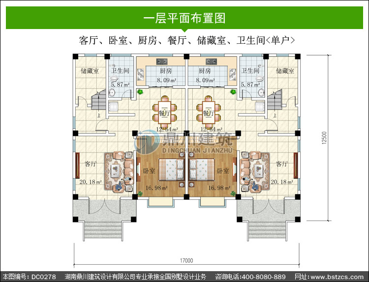 漂亮的三層雙拼別墅效果圖及施工圖_鼎川建筑,鼎川別墅圖紙