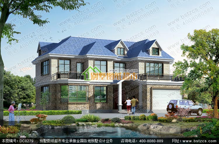 獨特二層帶車庫別墅設計圖紙及效果圖_別墅設計圖紙,農村房屋設