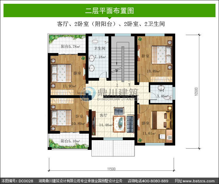 | 二 層: | 客廳、2臥室(附陽臺)、2臥室、2衛生間 | |||