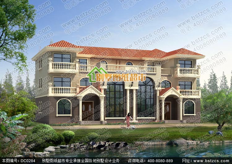 漂亮的三層雙拼別墅設計圖紙及效果圖_別墅圖紙超市,鼎川建筑