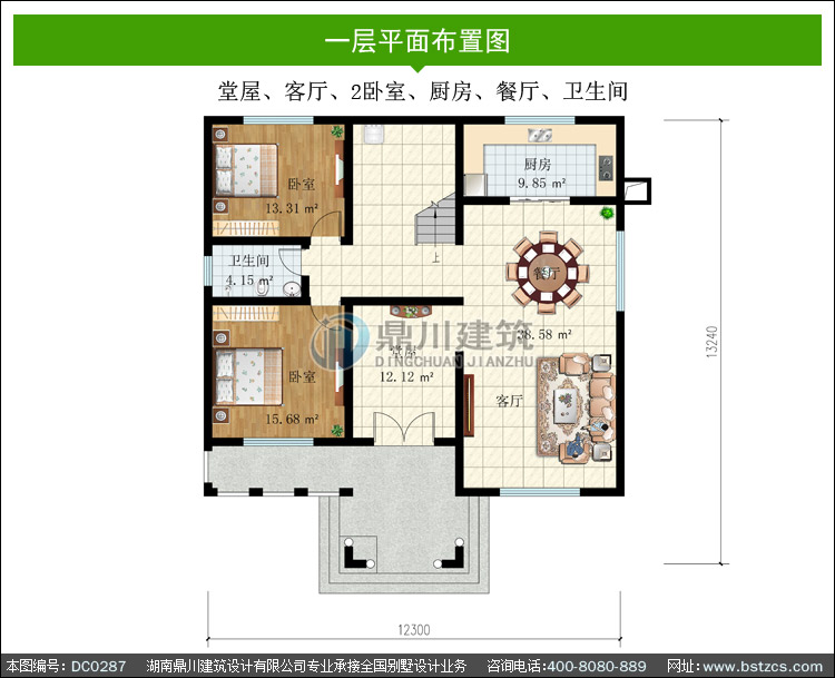 | 一 層: | 堂屋、客廳、2臥室、廚房、餐廳、衛(wèi)生間 | |||