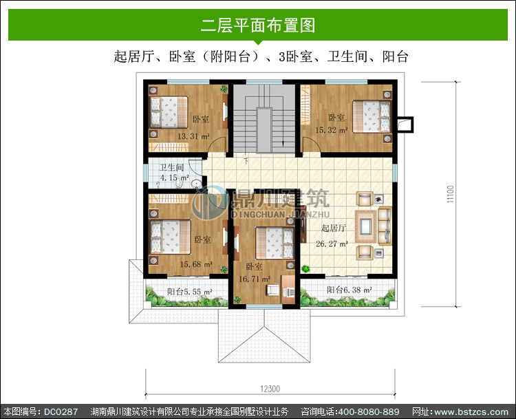| 二 層: | 起居廳、臥室(附陽臺)、3臥室、衛(wèi)生間、陽臺 | |||