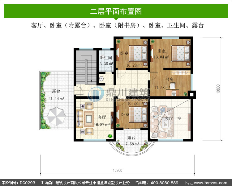 新農村二層帶大露臺別墅設計圖_農村房屋設計圖,鼎川建筑圖紙