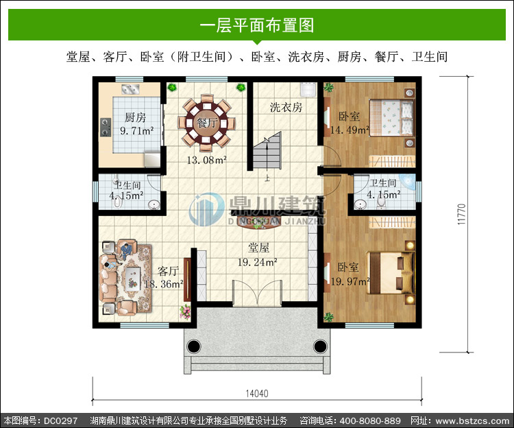 | 一 層: | 堂屋、客廳、臥室(附衛生間)、臥室、洗衣房、廚房、餐廳、衛生間 | |||