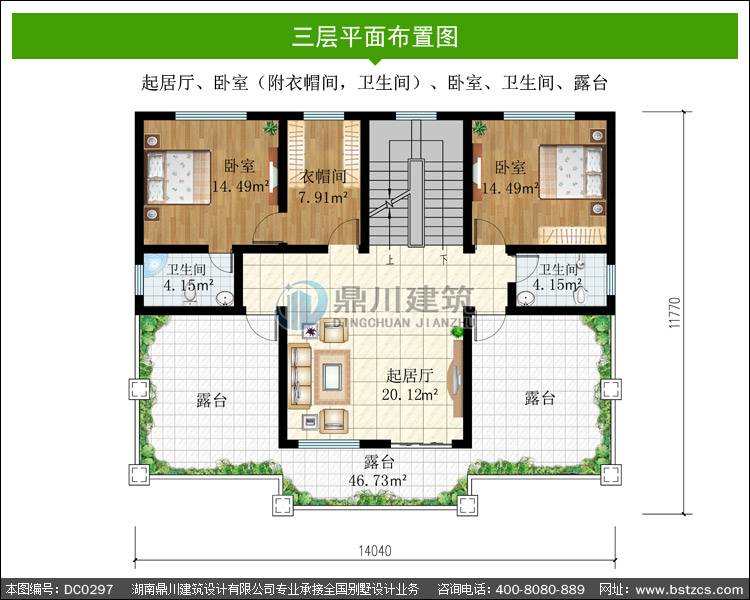 新中式三層帶露臺農村別墅圖紙及效果圖_農村別墅設計,鼎川別墅