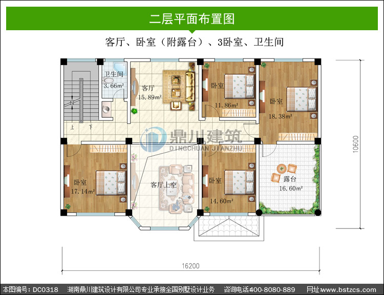 | 二 層: | 客廳、臥室(附露臺)、3臥室、衛(wèi)生間 | |||