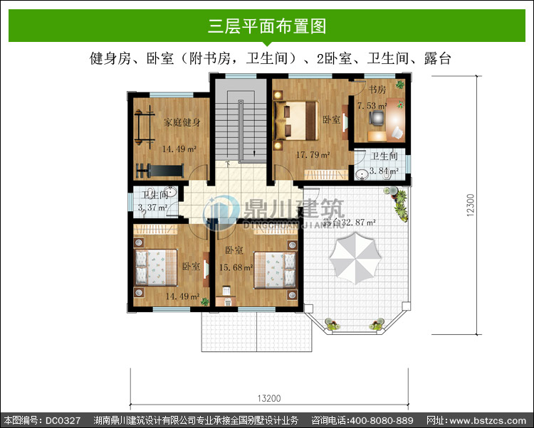 | 三 層: | 健身房、臥室(附書房,衛生間)、2臥室、衛生間、露臺 | |||