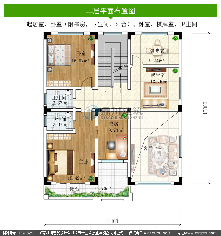 | 二 層: | 起居室、臥室(附書房,衛生間,陽臺)、臥室、棋牌室、衛生間 | |||