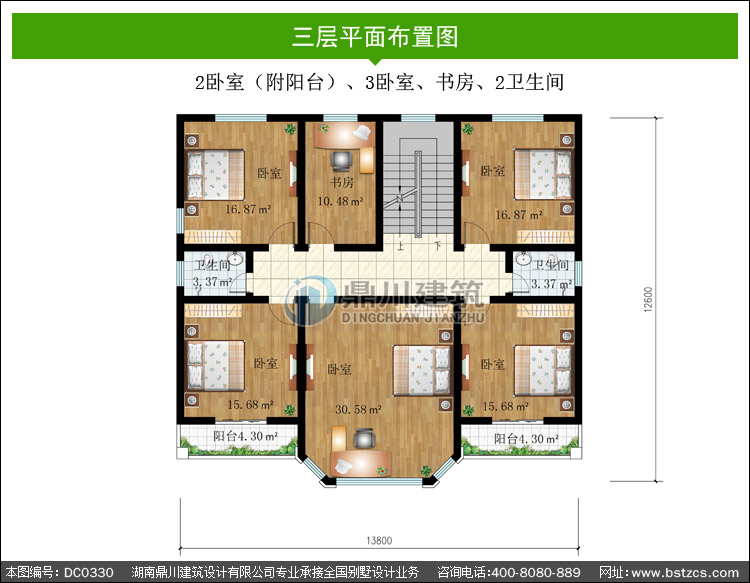 | 三 層: | 2臥室(附陽臺(tái))、3臥室、書房、2衛(wèi)生間 | |||