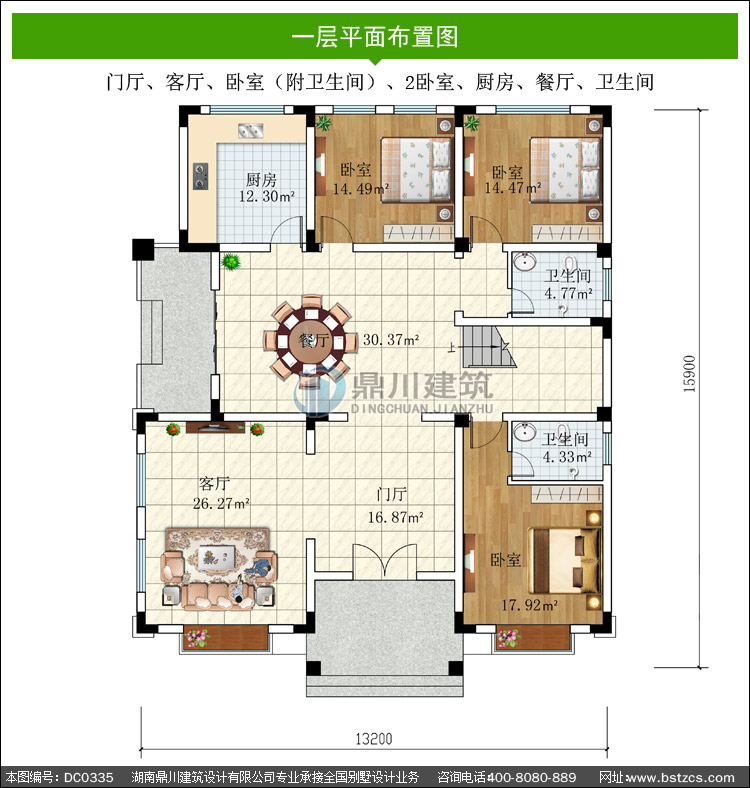 | 開間: 13.2米 | 進深: 15.9米 | 占地面積: 229.61平方米 | 建筑面積: 530.37平方米 |