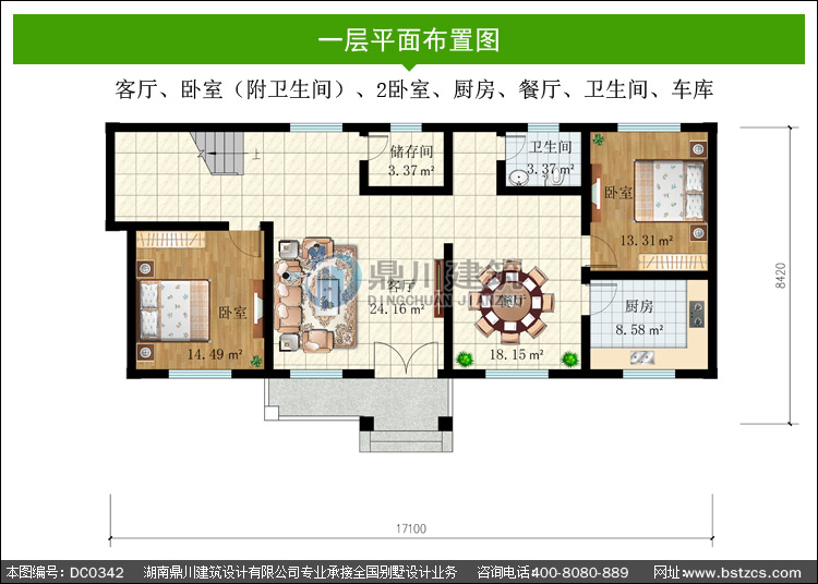 | 一 層: | 客廳、2臥室、廚房、餐廳、衛(wèi)生間、儲存間 | |||
