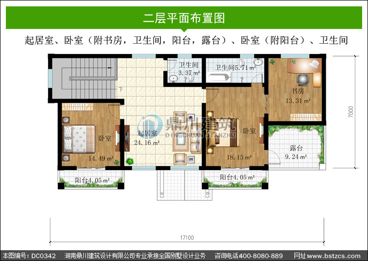 | 二 層: | 起居室、臥室(附書房,衛(wèi)生間,陽臺,露臺)、臥室(附陽臺)、衛(wèi)生間 | |||